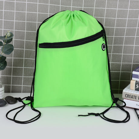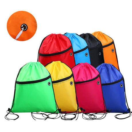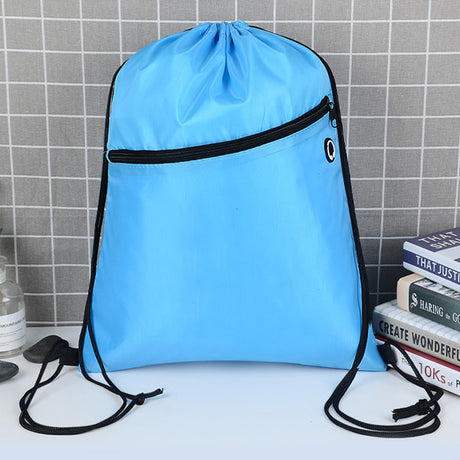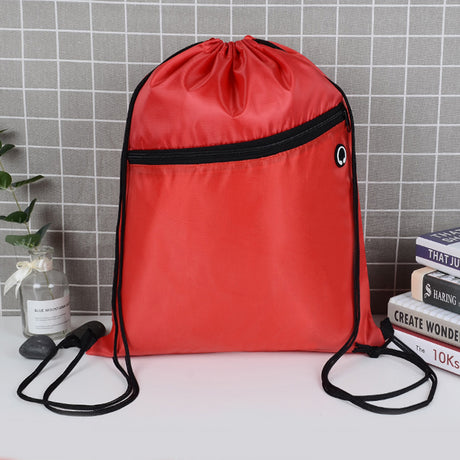Wholesale Durable Polyester Drawstring Gym Bags with Front Zipper Pocket