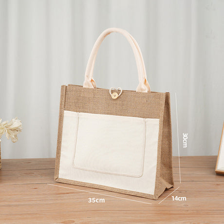 Grands sacs fourre-tout en toile de jute avec poche en toile