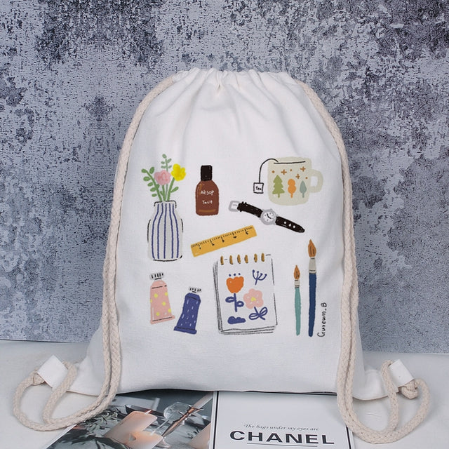 These drawstring backpacks are made from soft, breathable, durable, foldable, and machine-washable 100% cotton fabric. They open and close easily, making them great for storing clothes, stuffed toys, and other soft items, especially for travel.