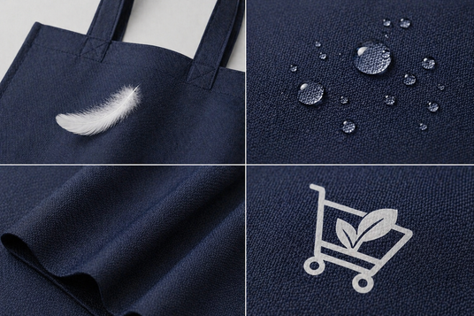 Polyester tote bags are made from synthetic polyester fibers, known for their strength, lightweight performance, and resistance to moisture and wear.